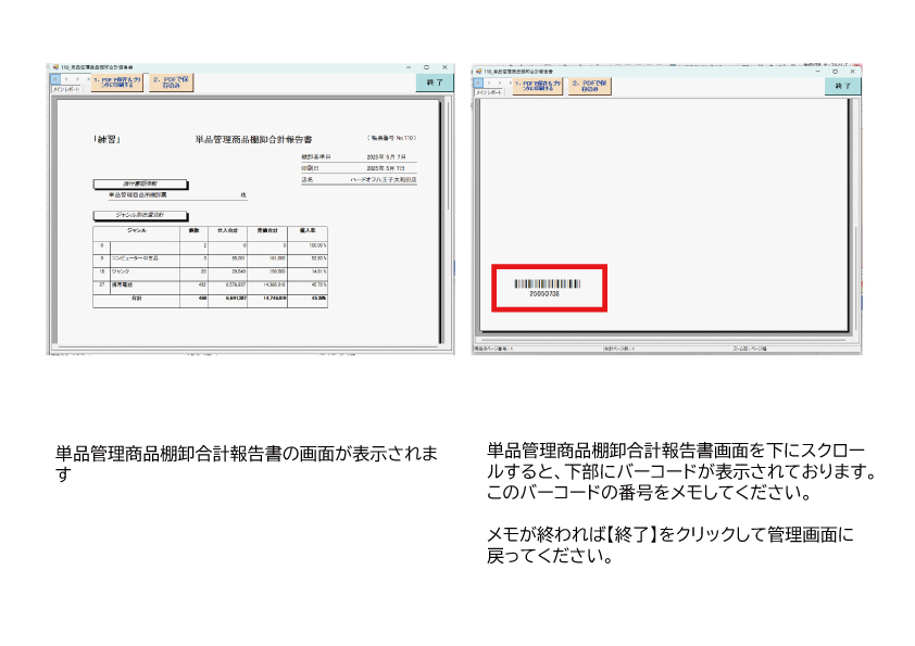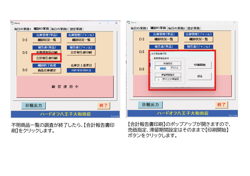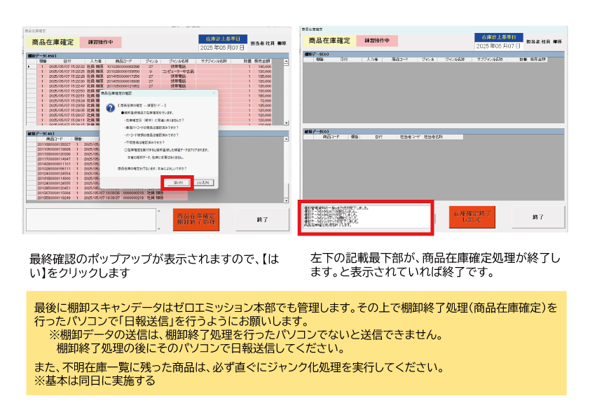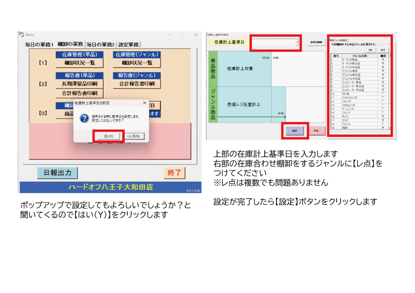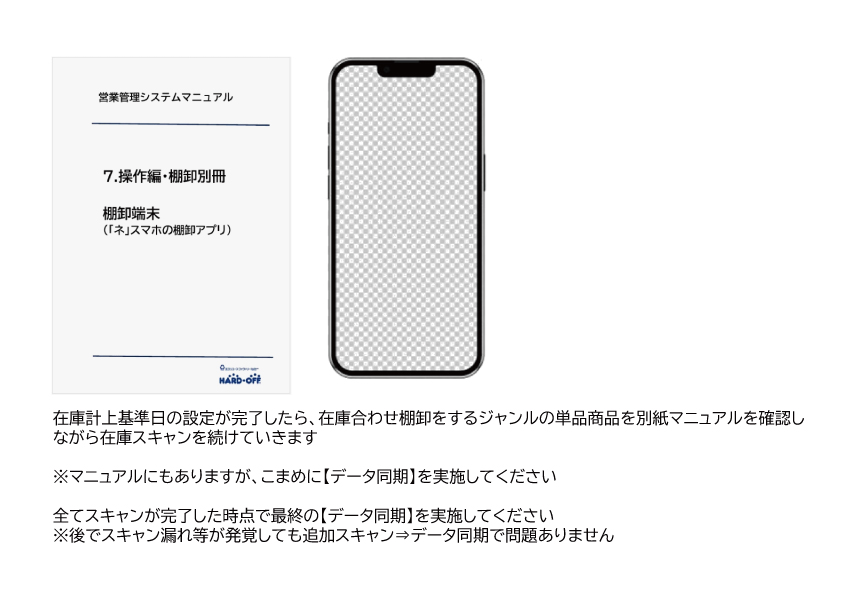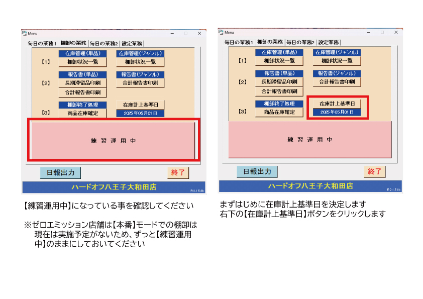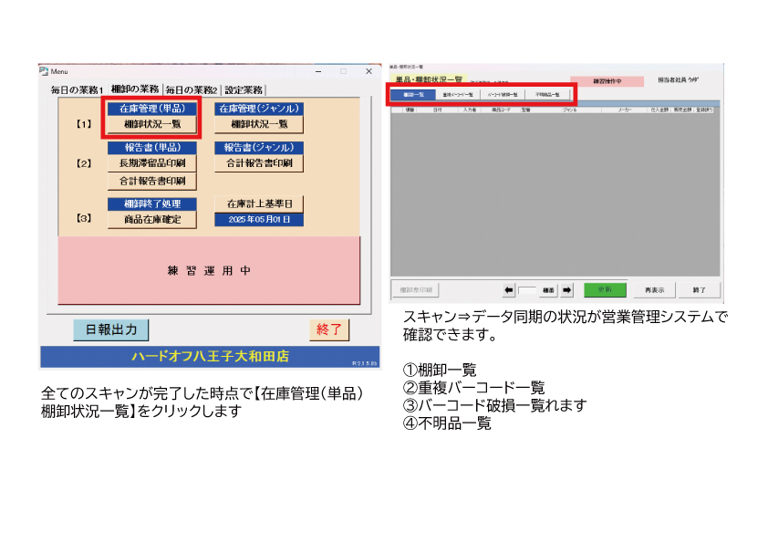 直営による「営業管理システムマニュアル」「7.操作編・棚卸別冊」をご参照ください。