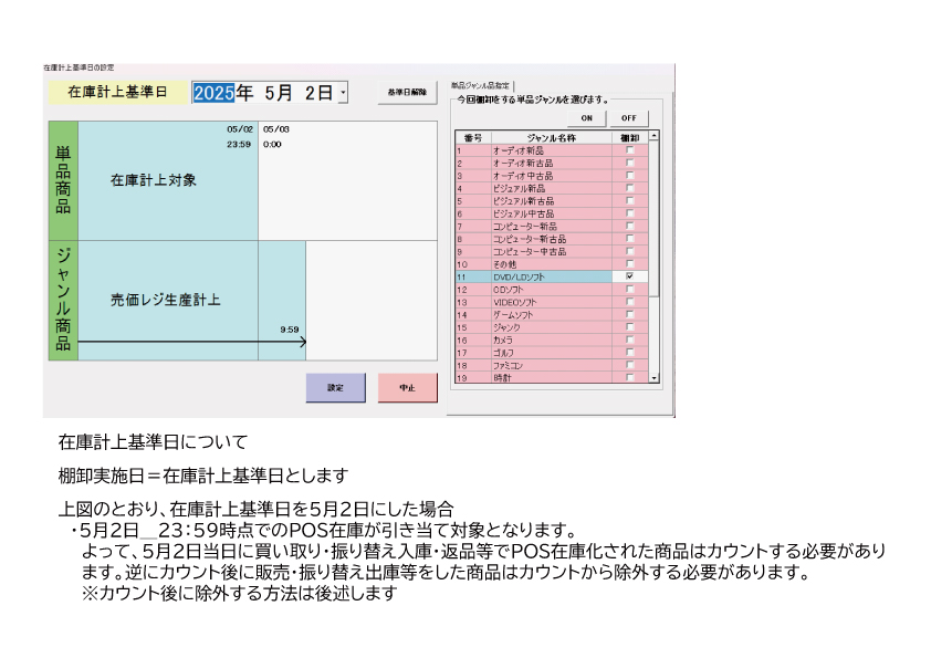 2025年5・6月で全ジャンルを一度単品商品棚卸を実施して、POS在庫を正しい在庫とします。その上で7月以降は経営計画書P56の流れで運用します。