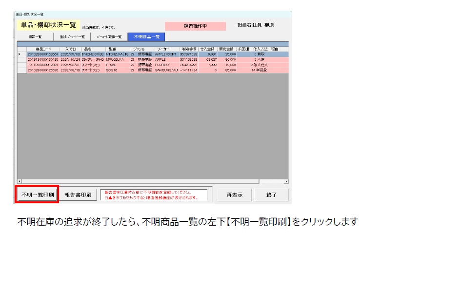 単品商品棚卸