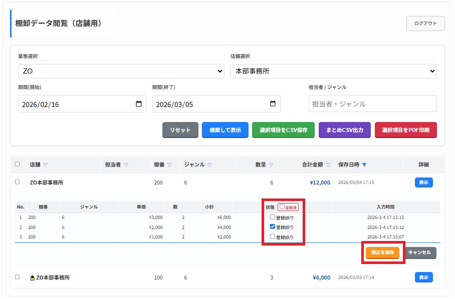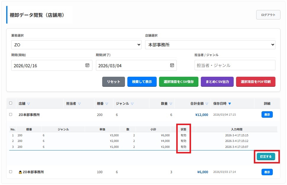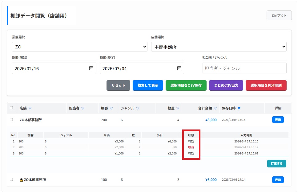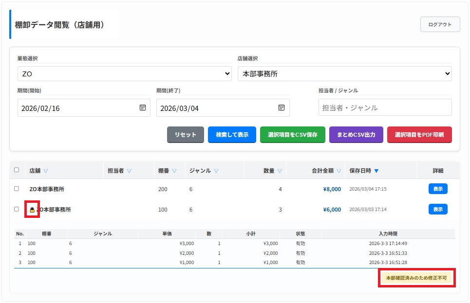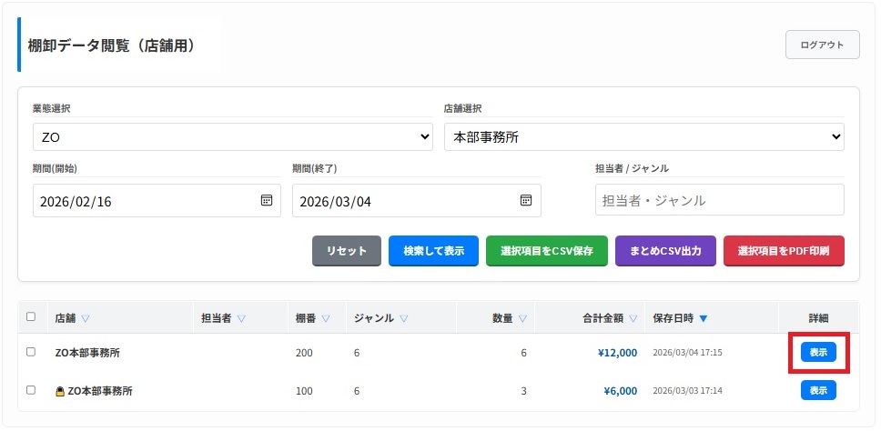 棚卸データ閲覧(店舗用)